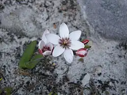 Geissorhiza ovata is a species of flowering plant in the family Iridaceae.[2] It is found growing on stone ridges and rock outcrops in the Northern Cape Province of South Africa.[3]