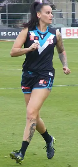 Gemma Maree Houghton (born 31 December 1993) is an Australian rules footballer playing for the Port Adelaide Football Club in the AFL Women's competition. Houghton was recruited by Fremantle as a free agent in October 2016.[3] She had never played AFL before, having been found through a talent search open to all athletes. She previously played high level basketball.[4]