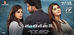 Nani Gentleman[4] (or simply Gentleman) is a 2016 Indian Telugu-language romantic thriller film directed by Mohan Krishna Indraganti who wrote the film with R. David Nathan. Produced by Sivalenka Krishna Prasad's Sridevi Movies, Gentleman stars Nani in double role alongside Surbhi, Nivetha Thomas, Tanikella Bharani, Srinivas Avasarala and Vennela Kishore. The film narrates the story of two women, Aishwarya and Catherine, whose respective lovers, Jayaram and Gautham, are lookalikes. When Gautham dies in an accident, Catherine suspects Jai's role in it and spies on him, which reveals further truths about Jai and the people around him, including Gautham.