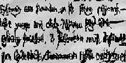 The Chronicle is, unusually, written in late Middle English, although in a second version (B manuscript), de Runcey or another hand appears to have (poorly) translated sections into Latin for the newly chosen abbot's reading.[1] This version is of a more decorated nature.[1] His journal has proved particularly useful for historians researching Fen customs before Cornelius Vermuyden's great drainage scheme of the 1630s, and is notable for its whimsical, yet unusually secular outlook and lack of superstition.[1] In particular his vivid account of stilt walkers has provided the foundation for many histories of the area: