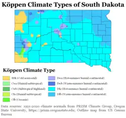 - ^ a b "Climate of South Dakota" (PDF). National Climatic Data Center. Archived from the original (PDF) on June 24, 2008. Retrieved August 24, 2008.