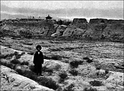 The fortress of Geok Tepe consisted of a walled enclosure 2.8 km (1+3⁄4 mi) in circuit, the wall being 5.5 m (18 ft) high and 6 to 9 m (20 to 30 ft) thick. In December 1880 in the Siege of Geok Tepe it was attacked by 6,000 Russians under General Mikhail Skobelev against 25,000 defenders.[3] The siege of Geok Tepe lasted 23 days, after which the fort was taken by storm. The Russian forces encountered heavy resistance and finally broke in by digging a tunnel under the wall, then detonating a mine under the wall on January 12 (24th new style), 1881. Once the fortress was breached, the Russian troops stormed in. Several hundred defenders died in the explosion, and many more died in the fighting that ensued.[4] Eventually, the defenders, and the 40,000 civilians inside the fort, fled across the desert, pursued by General Skobelev's cavalry. Around 8,000 Turkmen soldiers and civilians died while fleeing, adding to 6,500 who had died in the fort. Russian casualties were 398 killed and 669 wounded.