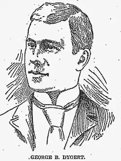 Dygert married Alberta Quirk in February 1897. The couple had three children, Edward A. Dygert (born c. 1900), Jane Dygert (born c. 1903) and George B. Dygert (born c. 1906). Dygert retired in 1953 following the death of his wife, to whom he had been married for 56 years.[17] Dygert died of a heart attack in 1957 at his home in Chicago at age 86.[23][24] He was survived by his two sons and daughter.[17]