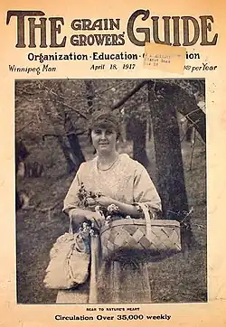 The agrarian activist Edward Alexander Partridge helped organize the Grain Growers' Guide.[3] The first issue appeared in June 1908 as the official organ of the Manitoba Grain Growers' Association (MGGA).[4] It was published by the Grain Growers' Grain Company through its subsidiary, Public Press Limited.[5] Partridge was the editor.[6] Partridge thought the guide should be a militant paper, but the co-founders did not agree. He resigned after the first issue.[7] Roderick McKenzie succeeded him as editor until 1911.[8]