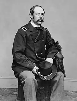 Sharpe served as the head of the BMI for the remainder of the war. His service and the BMI's work was essential to the Union's success in the Eastern Theater because of their ability to determine the whereabouts and activities of Robert E. Lee's Army of Northern Virginia, even when the two armies were out of contact and other Union arms like the cavalry were not operating effectively.[15][16] On July 4, 1864, to better support all of the Union forces operating in the Richmond-Petersburg area, Lt. Gen. Ulysses S. Grant redesignated the provost marshal of the Army of the Potomac as the provost marshal of the Armies Operating Against Richmond, transferring Sharpe and the BMI to his headquarters.[17] On February 7, 1865, Sharpe was promoted brevet brigadier general of volunteers (backdated to December 20, 1864).[18]
