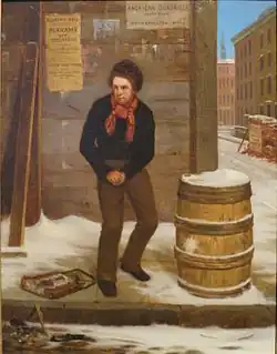 Among those who took notice of the young artist was Charles Mason, Chief Justice of the Iowa Supreme Court. He collected a group of associates and together they financed the young man's move to New York City for the formal study of art. Charles Anderson Dana provided him with a letter of introduction to Thomas Hicks, whose pupil he became, and in whose studio he met William Makepeace Thackeray.[2] He then enrolled in the school of the National Academy of Design, which he attended from 1851 until 1853.[1]