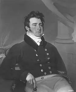 Howard advocated the establishment of a State Bank, opposed the doctrine of nullification, was a foe of lotteries, and urged the endowment of Maryland colleges.[4] Alexis de Tocqueville, the author of Democracy in America, described Howard in 1831 in his journal following several meetings as "... the son of the famous Colonel Howard and the representative of one of the oldest families. All of these gentlemen [referring to Howard and a couple other sons of famous Revolutionary War figures] are very ordinary individuals and evidently owe their elevation simply to their names." [6]