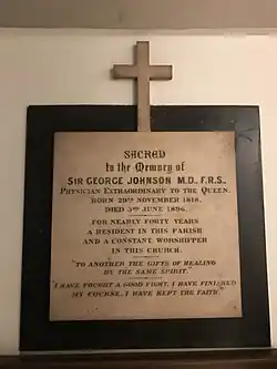 A memorial to George Johnson in St James's Church, Piccadilly.