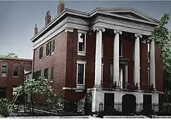 During the 1820s, the Louisville & Portland Canal was completed, and as the city developed, so did the George Keats's sawmill venture. He expanded into property development, ultimately involving over thirty-five developments along Louisville's Main and Jefferson Streets. Always working with partners, including Daniel Smith and John J. Jacob,[14] Keats culminated his building activities with the Louisville Hotel, built in 1835. He built a large home on the Jacobs' lot off Walnut Street, dubbed the "Englishman's Palace".[14]
