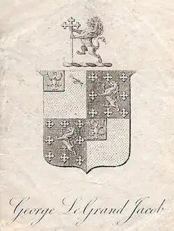 George Le Grand Jacob, the fifth son and youngest child of John Jacob,[a] by his wife Anna Maria Le Grand, was born at his father's residence, Roath Court, near Cardiff, 24 April 1805. His family in 1815 removed to Guernsey. Jacob was educated at Elizabeth College, Guernsey, and under private tutors in France and England, and when about fifteen was sent to London to learn Oriental languages under Dr. John Borthwick Gilchrist.