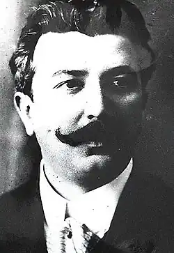 By 1913, Ranetti had returned to his work as a dramaturge, adapting Paul Gavault's L'idée de Françoise.[54] Before and during the Second Balkan War, he and Furnica began exposing cases of malfeasance in office, involving the higher echelons of the Conservative Party—focusing on Petre P. Carp and Alexandru Bădărău's alleged nepotism.[19] This period saw his involvement in theatrical and literary polemics: in 1913, he attacked in Epoca and Furnica Alexandru Davila, chairman of the National Theater, alleging that he was corrupt, womanizing,[19] and violent toward his staff.[55] Around that time, Transylvanian literary critic Ilarie Chendi began referring to Ranetti as Javranetti (from javră, "scoundrel").[3]