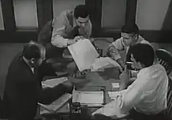 ![]() Sawaya (right) with Jack Webb and Barney Phillips in Dragnet, 1951 | |
