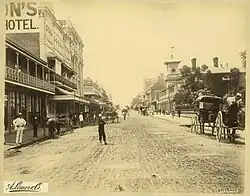 George Street as well as Queen Street, Wickham Street and the area known as Petrie Bight were unsealed and often dusty before 1899.[2] In 1897, the North Brisbane Council held an election on whether a loan should be raised so the streets could be woodblocked. Agreement was given after a close decision by only a third of registered voters, however the results were limited as the surface was very slippery during the rain and buckled during heavy rains.[2]