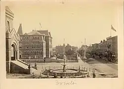 George Thomas Taylor was born on September 6, 1838, in Fredericton,[2] a British garrison town in the Colony of New Brunswick.[3] His father William P. Taylor had migrated from London, England, and worked as a carpenter. George Taylor's mother was Frances (Morrison) Taylor; George was the middle child of five siblings,[2][4] and the family lived in a house William built in 1846.[5][6] George developed an interest in photography through borrowing magazines from soldiers at the local garrison,[7] which led him to pursue a self-study of photography, particularly its scientific concepts.[1] During his teenage years, Taylor started creating daguerreotypes,[7] and would improve on his craft throughout the following years while working in the family carpentry business.[4][8] He had an additional early experience in painting,[4] which he would primarily practice during his later years.[9]