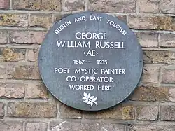 He was educated at Rathmines School and the Metropolitan School of Art, where he began a lifelong, if sometimes contentious, friendship with W. B. Yeats.[1] In the 1880s, Russell lived at the Theosophical Society lodge at 3, Upper Ely Place, sharing rooms with H. M. Magee, the brother of William Kirkpatrick Magee.[2]