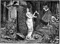 While producing black-and-white drawings for Punch, du Maurier created illustrations for several other popular periodicals: Harper's, The Graphic, The Illustrated Times, The Cornhill Magazine, and the religious periodical Good Words.[16] Furthermore, he did illustrations for the serialisation of Charles Warren Adams's The Notting Hill Mystery, which is often seen as the first detective story of novel length to have appeared in English.[17] Among several other novels he illustrated was Misunderstood by Florence Montgomery in 1873.[18]