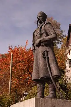 Linguist Victor Friedman regards Pulevski as a "complex and modern personality that very well understood the complexities of ethnical-national and civilian-national affiliations in the multilingual and multicultural environment of Macedonia."[29] His work Slavic Macedonian General History was published by the Macedonian Academy of Sciences and Arts in 2003. A monument of him was placed in the center of Skopje in 2011.[24] In North Macedonia, he is celebrated as a contributor in the "National Rebirth".[13] Despite Pulevski being an early adherent of Macedonism,[42][43] because of his pro-Bulgarian military activity, in Bulgaria he is regarded as a Bulgarian.[44][45][46] According to Tchavdar Marinov, of the Bulgarian Academy of Sciences,[47][48] there are reasons to interpret the case of Pulevski as a lack of clear national identity by him, while his numerous self-identifications reveal the absence of a clear national identity among the Slavic portion of the population in the region of Macedonia.[49]