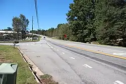 SR 323 starts at an intersection with US 129/SR 11 (Athens Highway) southeast of Gainesville in Hall County. It travels to the northeast to an intersection with SR 82 (Holly Springs Road) and a crossing over the North Oconee River. Just before entering Gillsville, the route intersects SR 52. The two routes share a brief concurrency over Candler Creek into town, where they pass Pine Grove Cemetery. At the intersection with County Line Road, they begin to travel along the Hall–Banks county line. Approximately 200 feet (61 m) later, SR 323 splits off to the northeast into Banks County proper, where it crosses over Grove and Hickory Level creeks before it reaches its eastern terminus, an intersection with SR 51 northwest of Homer. Here, the roadway continues as John Morris Road.[1]