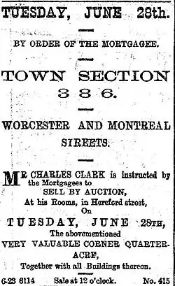 - ^ "Auctions". The Press. Vol. XXXV, no. 4947. 25 June 1881. p. 3. Retrieved 28 May 2016.