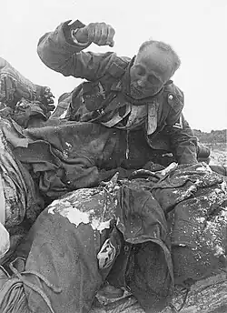 The corpse of a German soldier at a collection point after the Battle of Stalingrad, February 1943