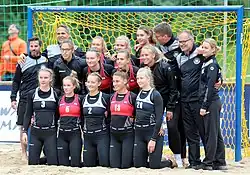 The Germany women's national beach handball team is the national team of Germany. It is governed by the German Handball Association and takes part in international beach handball competitions.