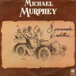 Released July 31, 1972, as a single which edited the track's original 4:39 length to 3:21, "Geronimo's Cadillac" reached number 37 on the Hot 100 in Billboard magazine.[2] The track also charted in Canada with a peak of number 30 on the Top Singles chart in RPM magazine. "Geronimo's Cadillac" afforded Murphey his sole Hot 100 charting until "Wildfire" on Epic Records reached number 3 in 1975. The success of "Wildfire" caused A&M to re-issue "Geronimo's Cadillac" with a new B-side: "Blessing in Disguise" a track from Murphey's 1973 album Cosmic Cowboy Souvenir, replacing "Boy from the Country". However this re-issue of "Geronimo's Cadillac" did not chart, failing to deflect interest from Epic's follow-up single release to "Wildfire", "Carolina in the Pines", which fell just short of the top 20.