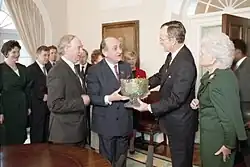James Gerard Collins (born 16 October 1938) is an Irish former Fianna Fáil politician who served as Minister for Foreign Affairs from March 1982 to December 1982 and 1989 to 1992, Minister for Justice from 1977 to 1981 and 1987 to 1989, Minister for Posts and Telegraphs from 1970 to 1973, and a Parliamentary Secretary from 1969 to 1970. He was a Member of the European Parliament (MEP) for the Munster constituency from 1994 to 2004. He served as a Teachta Dála (TD) for the Limerick West constituency from 1967 to 1997.[1]