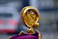In medieval times, in Zürich all female and male Bürger were members of the guilds, but beginning in the 19th century women were no more tolerated within the guilds then more as decoration of their men being still members of the guilds of Zürich. The history of the Gesellschaft zu Fraumünsters dates back to the late 9th century when the abbess of the Fraumünster Abbey (853 A.D.) in fact reigned the city of Zürich as Fürstäbtissin (imperial abbess) nominated by the king of the Holy Roman Empire, among them Katharina von Zimmern.[2] Gesellschaft zu Fraumünster, being the society of the former noble women of the Fraumünster Abbey, was established in 1989. Now, the honorable women of the society cultivate the virtuous habits of the former abbey by p.e. honoring the work of engaged women in the modern society. Beginning fifteen years ago, the society started to organize every three years the so-called Mittelalter Spectaculum, a medieval funfair, at the Münsterhof square.