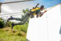 The program consists of a four-week "Ginger" phase followed by an eight-week post-Ginger phase.[6] It consists of classroom lessons and field exercises at Bundase, Aburi Mountains, and the Michel Camp-Zenu-katamanso-Gbatsona general areas.[6] The cadets practice conventional warfare with additional tactical drills conducted on the plains of the Michel camp.[6] At Achiase, the Jungle Warfare School offers an introduction to jungle operations.[6]