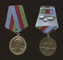 The High State Medal of Ghazi Mir Bacha Khan (Madal Dawalati Ghazi Mir Bacha Khan) recognizes the historical stature and role of Ghazi Mir Bacha Khan and is one of Afghanistan's highest awards. A further award, and one of the nation's highest civil awards for dedicated public service, is the High State Medal of Mir Masjidi Khan, in recognition of the historical stature and role of Mir Masjidi Khan.[5][6]