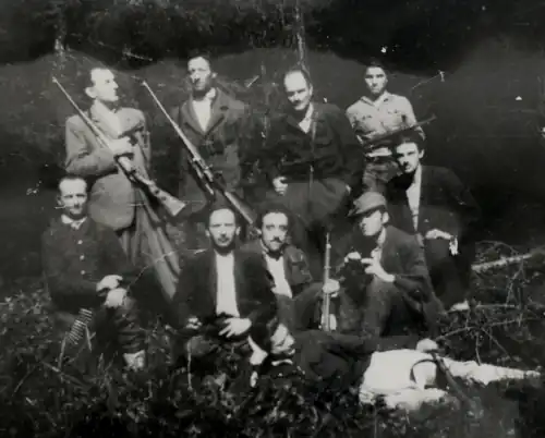 Gărzile lui Decebal, an anti-communist resistance group formed by members and sympathizers of the Iron Guard near Vatra Dornei. Photograph taken in September 1949 by an unknown Gărzile member, and preserved by the Securitate
