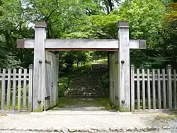 One of those residences used to belong to Oda Nobunaga. It was called Senjō-jiki (千畳敷), which literally means "one-thousand tatami mats." The residence was so large that it covered approximately two-thirds of the present day park. Much was known about the residence because the Portuguese Jesuit Missionary Luis Frois wrote about it extensively in his journals during his time visiting with Nobunaga, even going so far as to say that Gifu was "as bustling as Babylon."[1] However, until excavation began in 1984, it was unknown whether or not this was actually Nobunaga's Senjō-jiki.