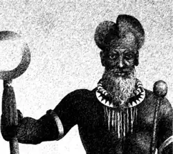 Gihanga I ("Creator", "Founder") is a Rwandan cultural hero described in oral histories as an ancient king popularly credited with establishing the ancient Kingdom of Rwanda. Gihanga descended from a line of gods Ibimanuka kings headed by Kigwa and introduced foundational elements of the African Great Lakes civilization, including fire, cattle, metalworking, hunting, woodworking, and pottery.[1] He was described as possessing talents in leadership, technology, and spirituality.[2] It is said that Gihanga ruled Rwanda from his palace in the now forest of Buhanga, an area that retained its forbidden and sacred status through the period of colonialism until the new government of Paul Kagame opened it to the public in 2004.[3] No tangible evidence exists - apart from oral myths - to indicate that Gihanga lived,[2] although many Rwandans believe that he once lived .[4]