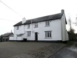 - A "Tenement at Rookebeare in the parish of Ffremington", which as stated in his will he had bought from his brother. This is the farmhouse now known as "Higher Rookabeare", where there is a strapwork overmantel that bears the initials "GSP" and "WP" and the date 1630.[6]