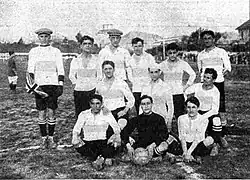 The football team took part in the Primera División championships since 1909, when the squad won the second division title,[3] therefore promoting to the top division. In 1910, they managed to reach the final of the Copa Jockey Club, where they lost 3-1 to their classic rival, Estudiantes.[4] Gimnasia played in Primera from 1910 to 1917 when the team was relegated to the División Intermedia (second division) after finishing 20th of 21 teams.[5] The club disaffiliated from the Association soon later, although football has remained as one of the sports practised up to present days.