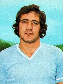 Giorgio Chinaglia (Italian pronunciation: [ˈdʒordʒo kiˈnaʎʎa]; 24 January 1947 – 1 April 2012) was an Italian footballer who played as a striker. He grew up and played his early football in Cardiff, Wales, and began his career with Swansea Town in 1964. He later returned to Italy to play for Massese, Internapoli and S.S. Lazio in 1969. Chinaglia led Lazio to the club's first league championship in the 1973–74 season, during which he was also the league's leading scorer. He played international football for Italy, making 14 appearances and scoring 4 goals between 1972 and 1975, including two appearances at the 1974 FIFA World Cup. Chinaglia was the first player in Italian football history to be called up internationally from the second division.[2]