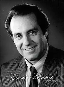 Giorgio Lamberti (born July 9, 1938) is an Italian operatic tenor. He made his professional debut at the Teatro dell'Opera di Roma in 1964 as Henri in Les vêpres siciliennes. He returned to that theatre the following year to star in the world premiere of Mario Zafred’s Wallenstein. In 1965 he made his American debut at the Lyric Opera of Chicago as Radames in Giuseppe Verdi's Aida. In 1974 he made his debut at the Metropolitan Opera as Cavaradossi in Tosca, and in 1979 he gave his first performance at the Royal Opera House, Covent Garden in the title role of Don Carlos. He has sung leading roles internationally at such theaters as La Scala, the Berlin State Opera, the Vienna State Opera, the Paris Opera, the Teatro Colón and the Zürich Opera among others.[1]