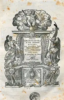 3. ^ Cf. Thomas Reiser, Giovan Antonio Rusconi (1515/20–1579), in: Firmitas et Splendor. Vitruv und die Techniken des Wanddekors, ed. by Erwin Emmerling, Andreas Grüner et al., Munich 2014 (Studien aus dem Lehrstuhl für Restaurierung, Technische Universität München, Fakultät für Architektur) ISBN 978-3-935643-62-7, pp. 269-276.