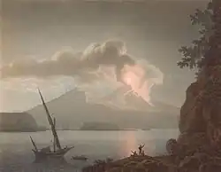 Lusieri believed that he might have been more famous as an artist had he not spent so much time working for Lord Elgin and his antiquity collection. He had originally been known for the accurate landscapes and studies of buildings in Italy and Sicily that he often sold to young gentlemen on their Grand Tour, especially after he moved to Naples in 1782 and concentrated on views of Mount Vesuvius. These paintings sold well because the volcano was then quite active. Lord Byron regarded him as an important Italian artist, although he may have been biased as he was also the good friend of Lusieri's brother-in-law, Nicolo Giraud.[3] Lusieri painted his landscapes in accurate detail, and resisted the fashion for imaginative constructions imitating Claude Lorrain, arguing that paintings should be taken from real life. From 1799 he spent his time working for Lord Elgin in Greece, and less time painting.[4]