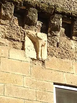 The coat of arms can also be seen inside the castle of Minervino Murge, but it's been partly damaged, presumably by his and his brothers' enemies.[9]