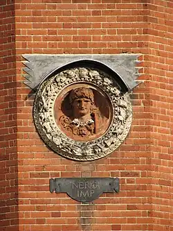 In June 1521, Giovanni wrote from Rome in Latin to Cardinal Wolsey requesting payment for his work at Hampton Court. He had made, painted, and gilded, eight terracotta medallions costing £2 6s 8d each, with three Stories of Hercules costing £4 each, with 20 shillings expense on fixing the sculptures.[2] Some of these medallions commissioned by Wolsey can still be seen in place on the palace.