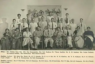Gira Sarabhai, sitting, extreme right, along with her father Ambalal Sarabhai 3rd seat from the right, sister Gita Mayor sitting on the extreme left and their brother Vikram Sarabhai, seated, 4th from the left.