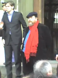 Ferrara returned to television on 11 December 1997 at 8.50 pm on Rai 2, where he presented Piazza Fontana – Storia di una cospirazione on the occasion of the 28th anniversary of the Piazza Fontana bombing.[59] In addition to Ferrara as host, it was interspersed with images of an investigative documentary on the well-known facts by Fabrizio Calvi and Fredric Laurent, with interviews with some of the protagonists of the story.[60] With the September 11 attacks, his political and ideal positions took an anti-secularist and socially conservative turn; despite being avowedly non-Catholic, he began to support the need to strengthen Judeo-Christian values as the West's bulwark in the face of danger growing Islamic extremism. He was defined by Eugenio Scalfari as a "devoted atheist".[61][62][63] In addition to directing Il Foglio, Ferrara hosted Otto e mezzo on La7 and subsequently Zerovero on Telecampione, of which he was also the author, with a brief interlude in 2008, when his candidacy in the Italian general election made him incompatible with the role of host. He was supported in hosting the programme first by Gad Larner, then by Luca Sofri, followed by Corriere della Sera journalist Barbara Palombelli, and by Liberazione journalist Ritanna Armeni. In 2005, he was again joined by Lerner, who left after a few episodes to dedicate himself to his programme L'infedele, who was replaced again by Armeni.[64][65] That same year, he also published a collection of essays entitled Non dubitare. Contro la religione laicista.[35][nb 4]