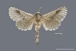 The wingspan 23–28 mm.[3] Adults have been recorded on wing from April to August.