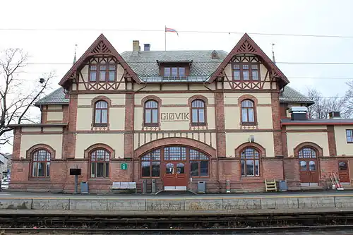 1. ^ "Gjøvik Jernbanestasjon". Kulturminnesøk. Retrieved December 1, 2017.