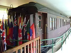 After the war, the Compiègne site was restored by German POW labour. On Armistice Day, 1950, a replacement carriage was re-dedicated: an identical Compagnie des Wagon-Lits carriage, No. 2439, built in 1913 in the same batch as the original and also part of Foch's private train during the 1918 signing, was renumbered No. 2419D.