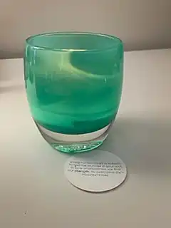 This is the glassybaby votive called "strength" along with the circle card poem behind it.