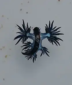Glaucus marginatus is a species of small, floating, blue sea slug; a pelagic (open-ocean) aeolid nudibranch; a marine opisthobranch gastropod mollusc in the family Glaucidae.[1][2] This species is closely related to Glaucus atlanticus, and is part of a species complex (Informal clade Marginatus) along with Glaucus bennettae, Glaucus thompsoni, and Glaucus mcfarlanei.[3] Like Glaucus atlanticus, it is commonly known as a blue dragon.[4]