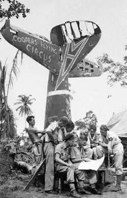 In July 1944, Cooper returned to Australia and once again took up instructor duties, this time at No. 2 Operational Training Unit. In January 1945, he was temporarily promoted to wing commander and tasked to take over No. 80 Wing, then based in Morotai (an island in the Dutch East Indies), from Group Captain Clive Caldwell. No. 80 Wing, operating Spitfires, was then training for the forthcoming invasion of Borneo, and once the invasion began, supported the Borneo campaign. Cooper remained in command of No. 80 Wing until the end of the war. In September 1945, Cooper was put in command of No. 81 Wing, which was tasked with occupation duties in Japan. He returned to Australia in 1947, having been promoted to acting group captain at the time of taking over No. 81 Wing.[2]