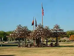 Glendale Veterans War Memorial also known as the Glendale USS Arizona Memorial (2002) is a monument to United States veterans of all wars. It is located on the lawn in front of the Glendale Public Library at 5959 West Brown Street, Glendale, Arizona. It was created by artist Joe Tyler with assistance from ceramist Scott Cisson and sculptor Sylvania Anderson.[1] The monument includes pieces of the USS Arizona, a battleship sunk at the Attack on Pearl Harbor, December 7, 1941.